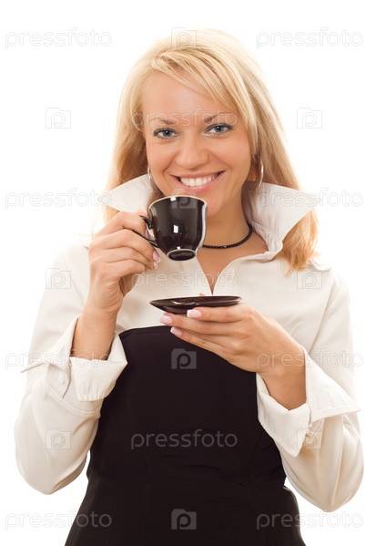 Портрет счастливой женщины с кружкой