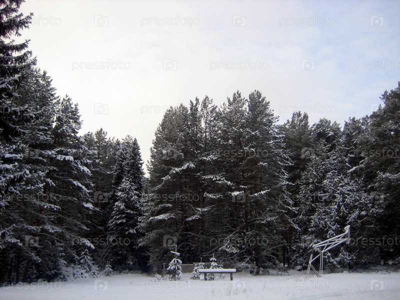 Зимний лес возле спортивной площадки