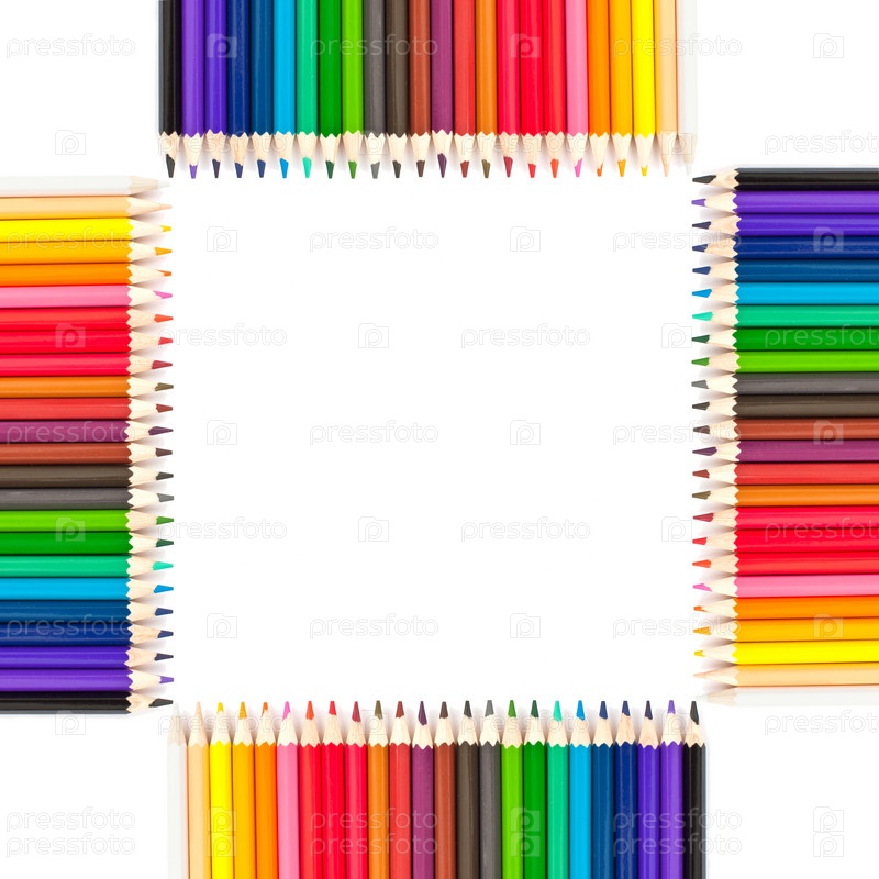 Рамка из цветных карандашей. Изолированная на белом фоне