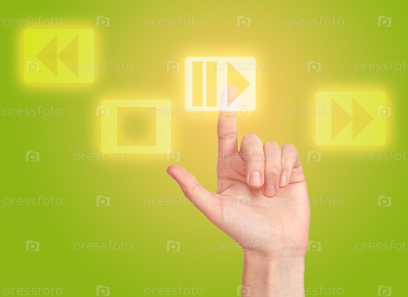 Рука нажимает кнопку на сенсорном экране