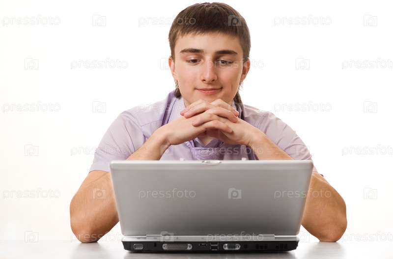 Портрет делового молодого человека за ноутбуком