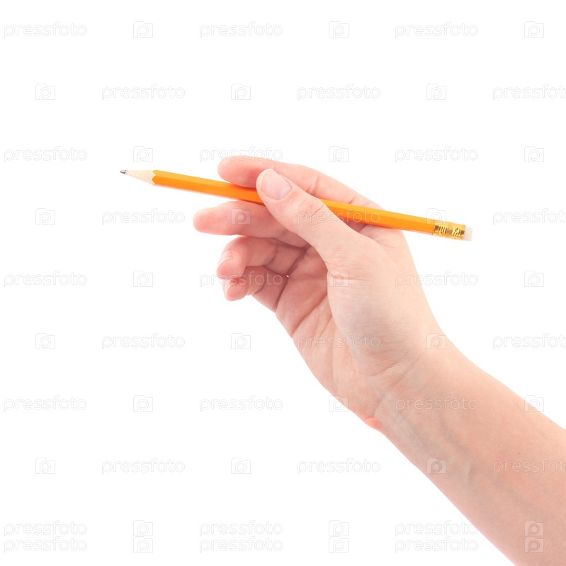 Рука, держащая простой карандаш. Изолированная на белом фоне