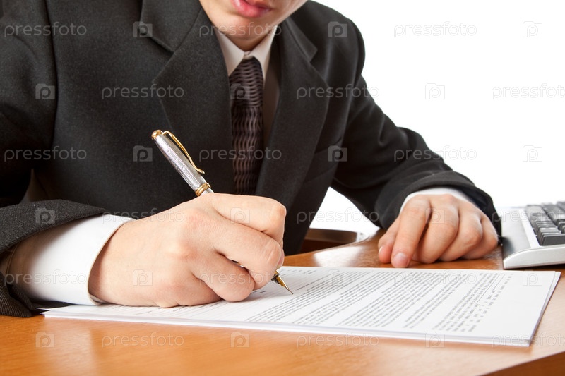 Близкий снимок руки бизнесмена, подписывающего контракт. изолированный на белом фоне