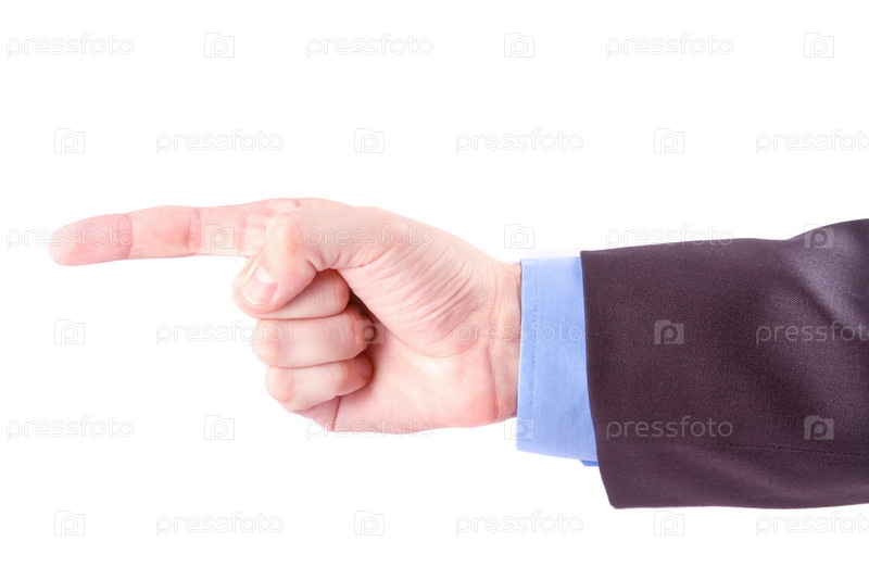 Бизнесмен указывает пальцем направление, изолированный, на белом фоне