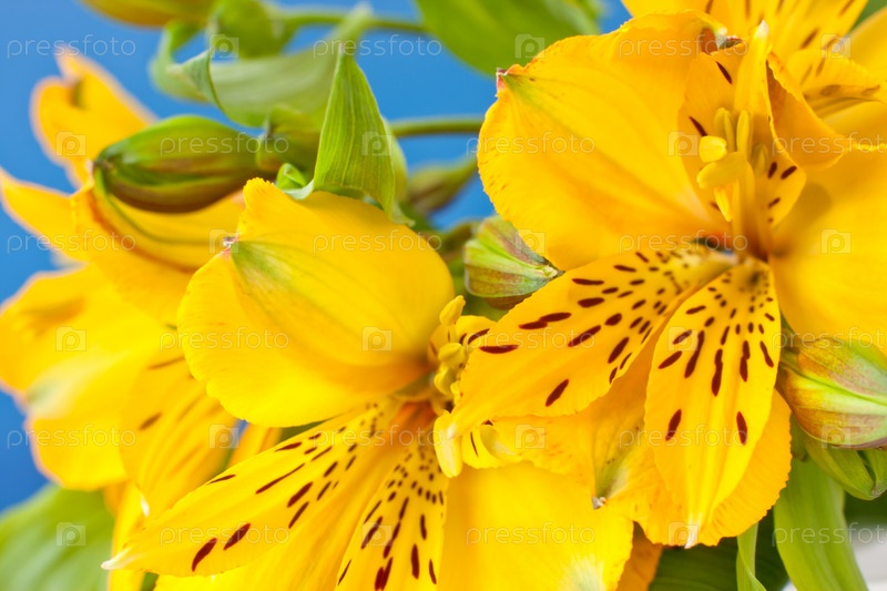 Красивая желтая дикая орхидея на голубом фоне