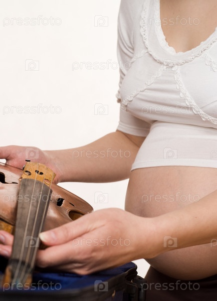 Живот беременной женщине и скрипка