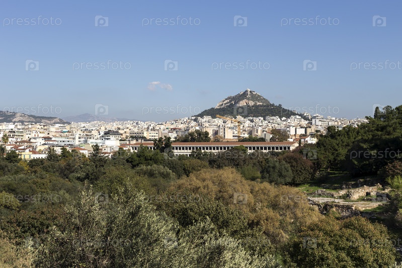 Панорамный вид на город Афины (Старая Агора и холм Лекавиттос)