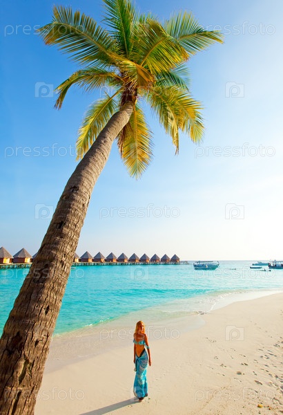 Девушка на тропическом острове в океане