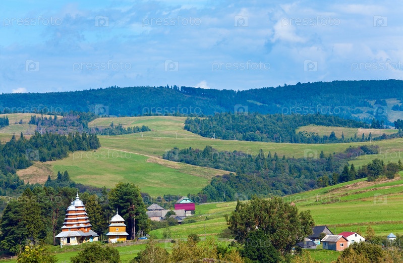 Деревня на склоне горы, Карпаты