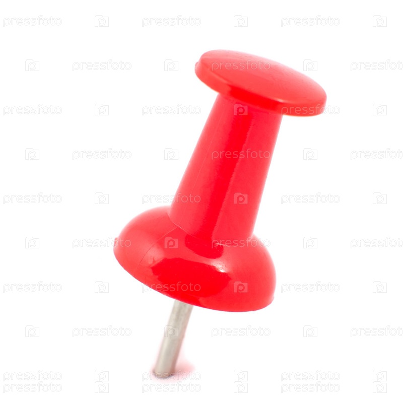Красная канцелярская кнопка на белом фоне
