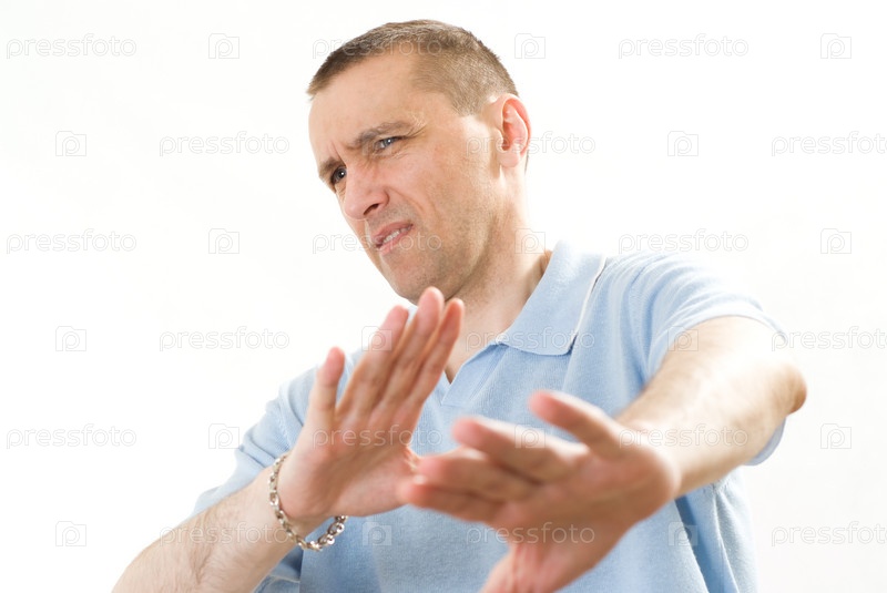 Портрет злого молодого мужчины на белом фоне