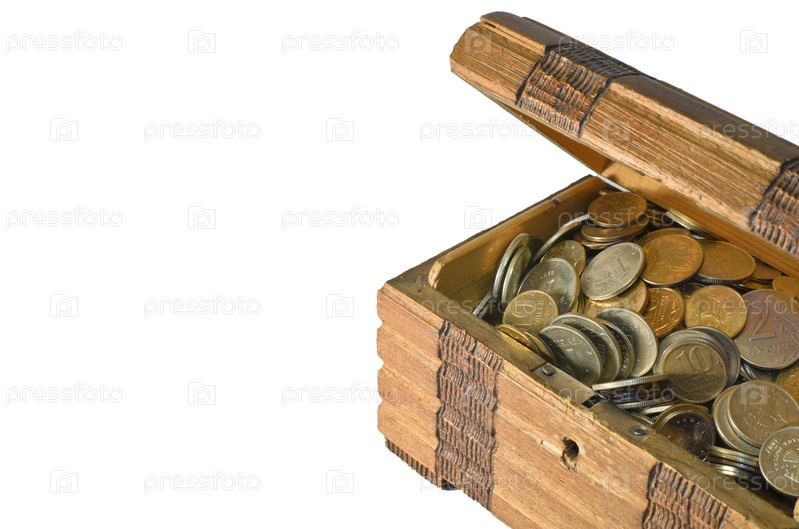Сундук с монетами на белом фоне
