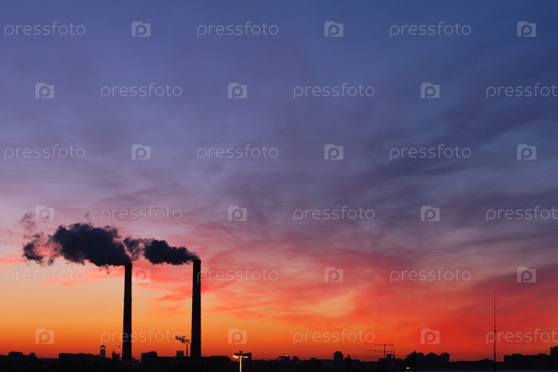 Дым из труб на фоне заката