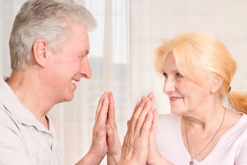 Счастливая пожилая пара на фоне окна
