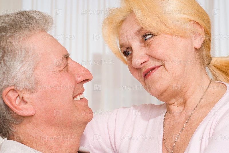 Счастливая пожилая пара на фоне окна