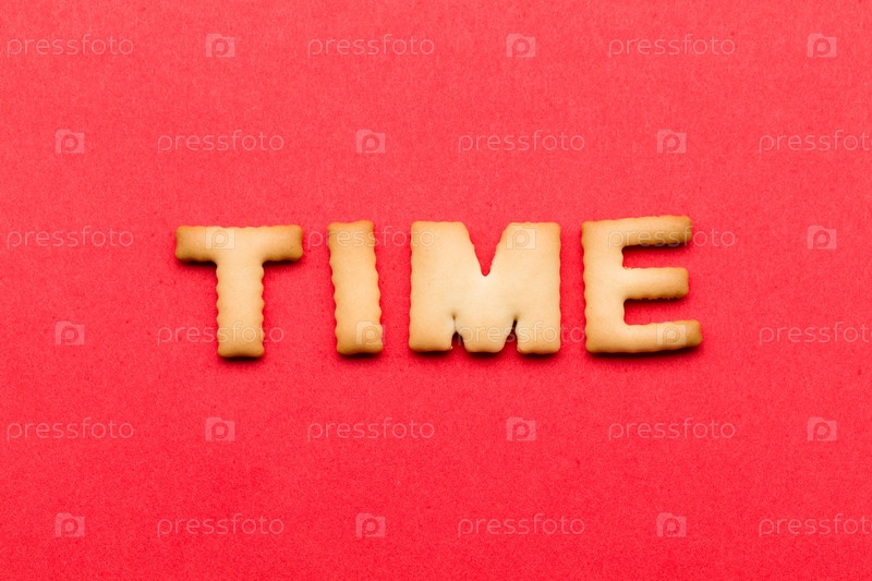 Слово из печенья на красном фоне