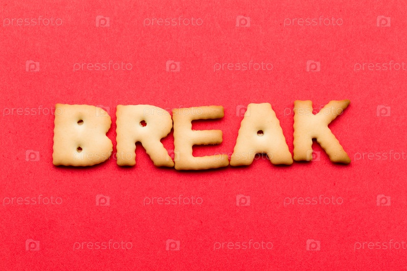 Слово из печенья на красном фоне