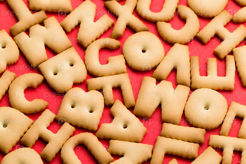 Слово из печенья на красном фоне