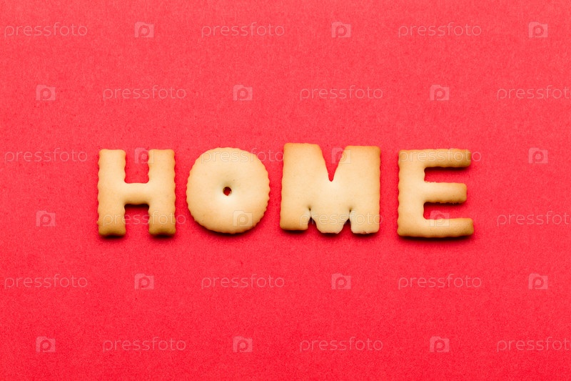 Слово из печенья на красном фоне