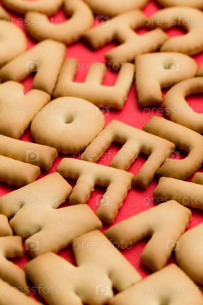 Слово из печенья на красном фоне