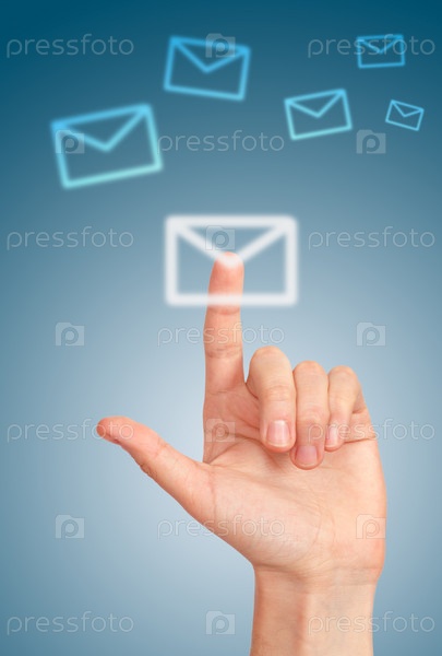 Рука нажимает на иконку письма