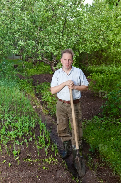 Молодой мужчина работает в саду