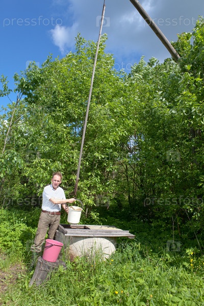 Молодой мужчина у колодца