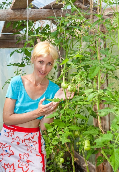 Молодая женщина в теплице