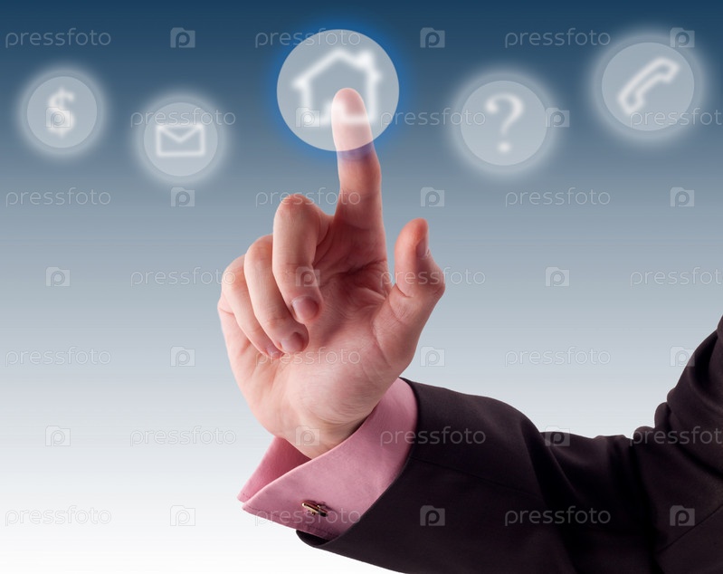 Бизнесмен нажимает иконку на виртуальном экране