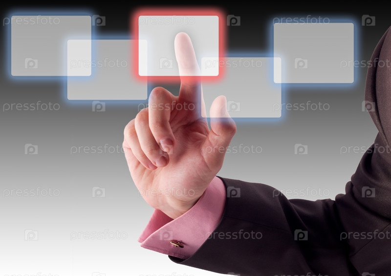 Бизнесмен нажимает иконку на виртуальном экране