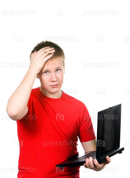 Подросток с ноутбуком. Устал от проблем