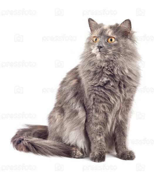 Пушистая кошка на белом фоне