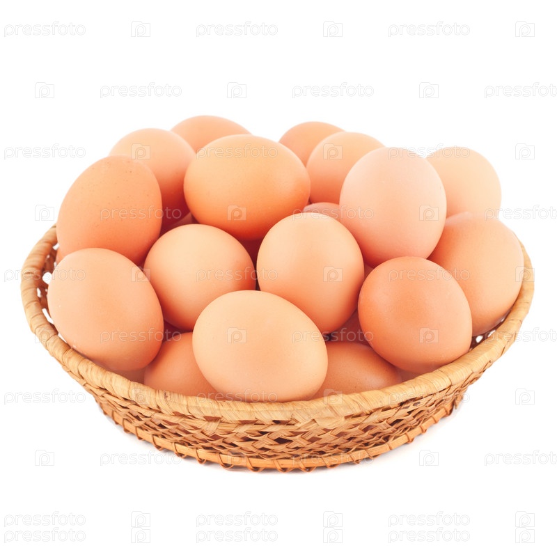 Корзинка с яйцами на белом
