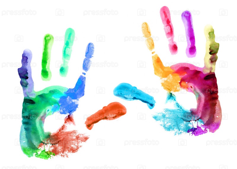 Цветные отпечатки рук на белом фоне