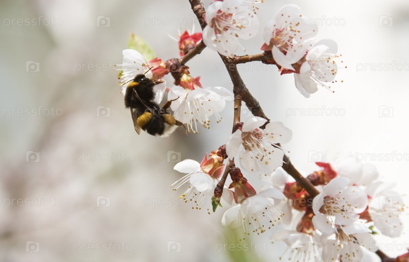 Шмель на цветущей вишне