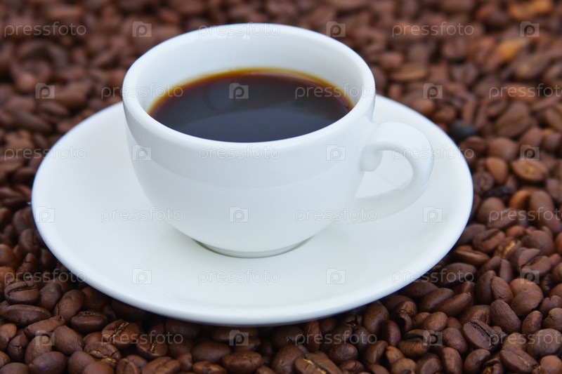 Чашка кофе на кофейных зернах