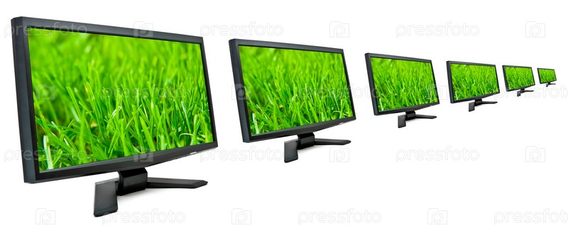Мониторы с изображением травы на экране на белом фоне