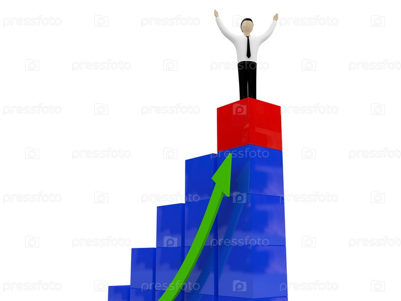 Диаграмма и бизнесмен на белом фоне