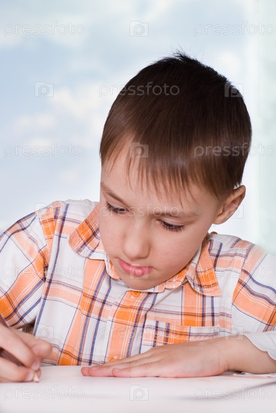 Маленький мальчик, рисующий на бумаге