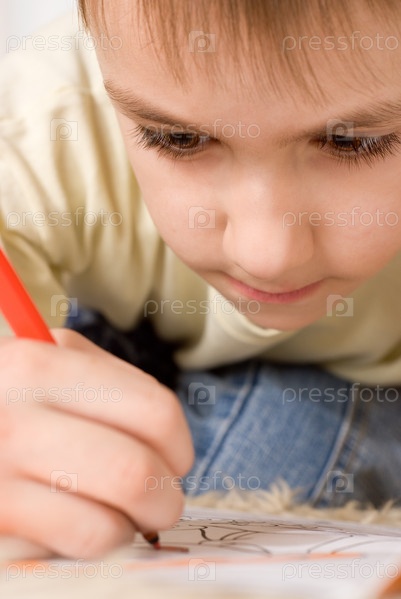 Маленький мальчик, разукрашивающий картинку