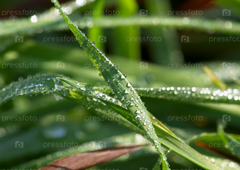 Капли дождя на листьях травы