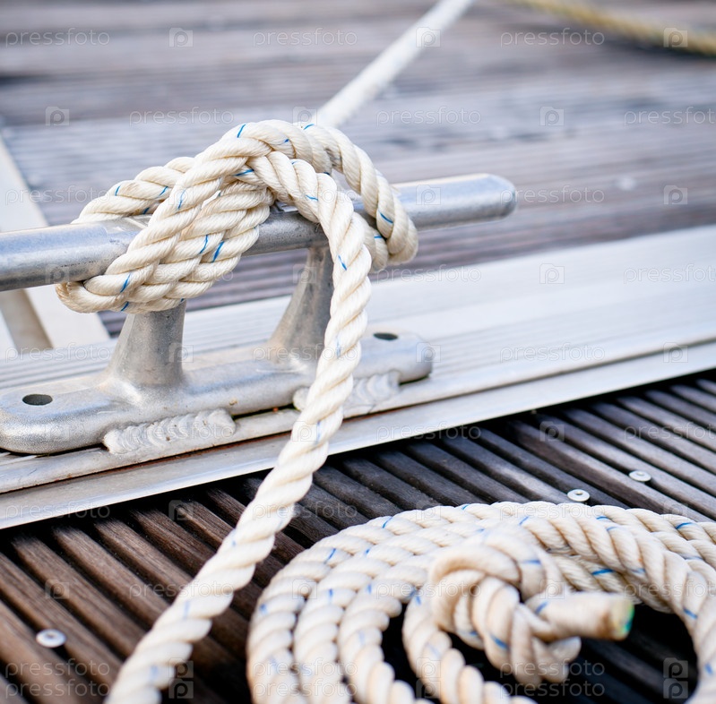 Веревка привязанная к металлической ручке на корабле