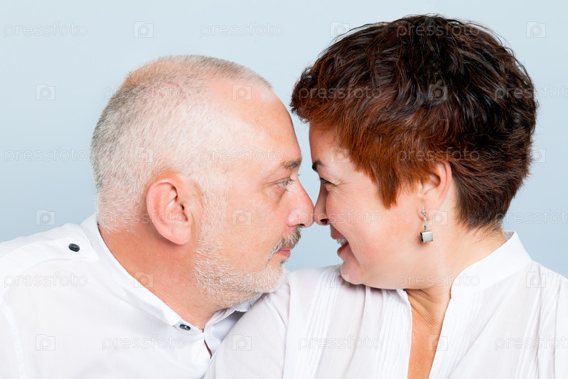 Влюбленные мужчина и женщина на белом фоне