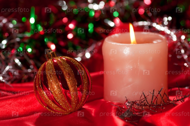 Новогодние украшения и свеча