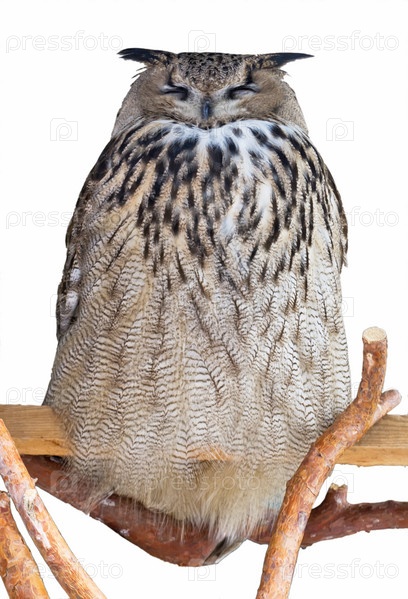 Сова с закрытыми глазами на ветке