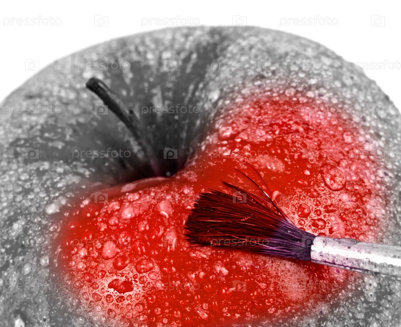 Раскраска яблока кистью красного цвета