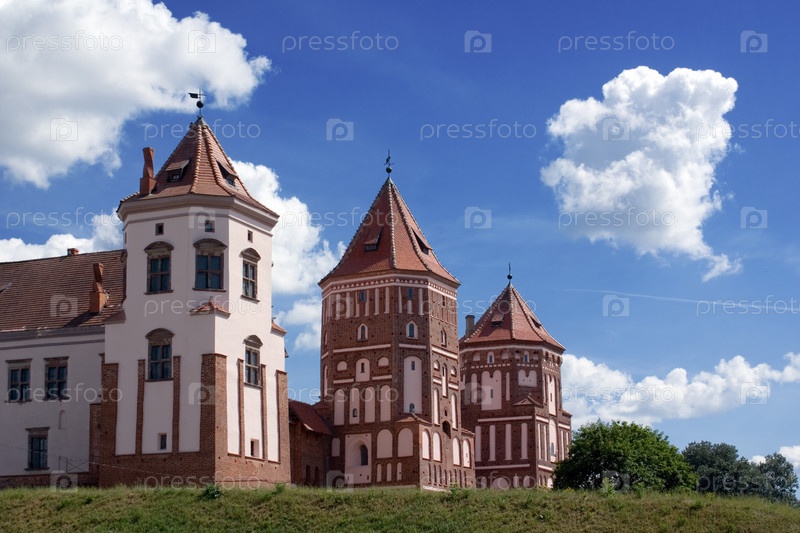 Вид на три башни замка Мир, Беларусь