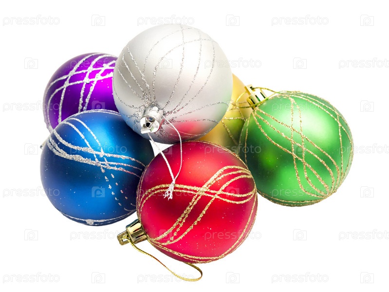 Разноцветные новогодние шары на белом фоне