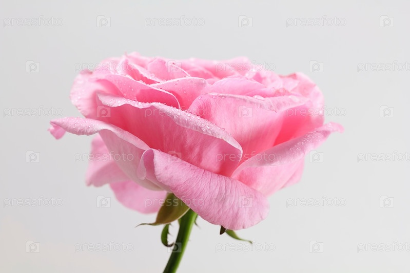 Роза с каплями росы на белом фоне
