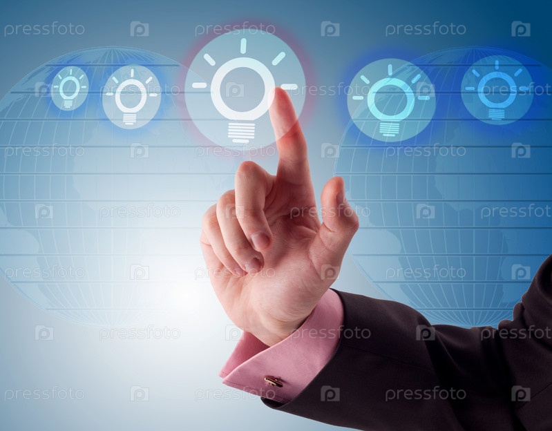 Сенсорный экран и рука пользователя, нажимающего кнопку
